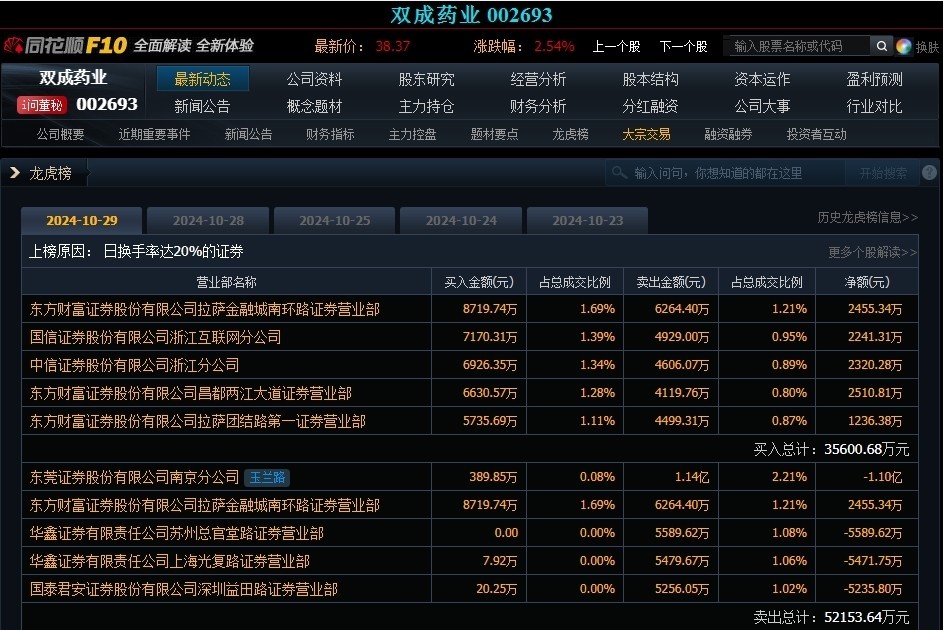 开云体育在10月29日双城药业龙虎榜上-云开(中国大陆)Kaiyun·官方网站-登录入口