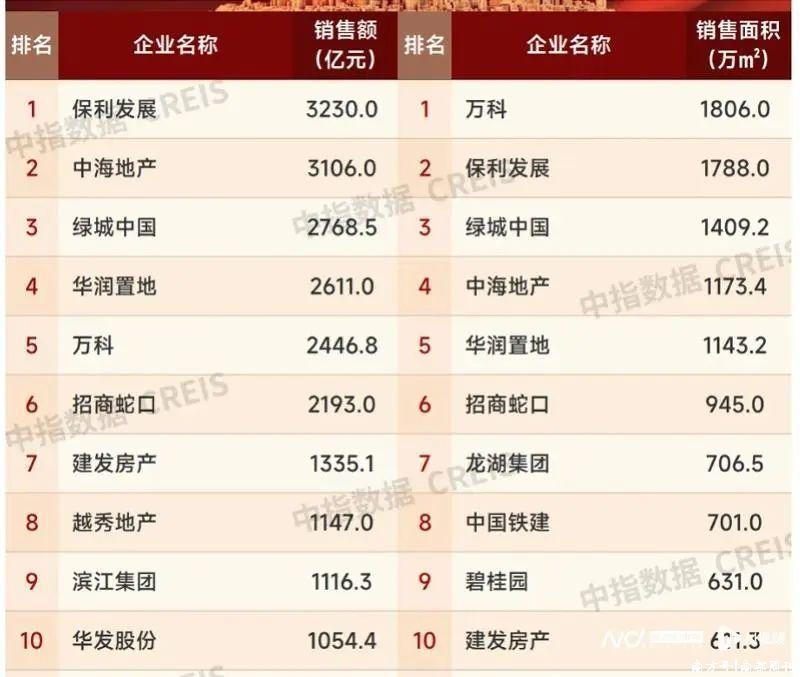 相较于2023年,2024年保利、中海、绿城别离以3230亿元、3106亿元、2768亿元位列前三,绿城踏进前三强,万科位列第五。