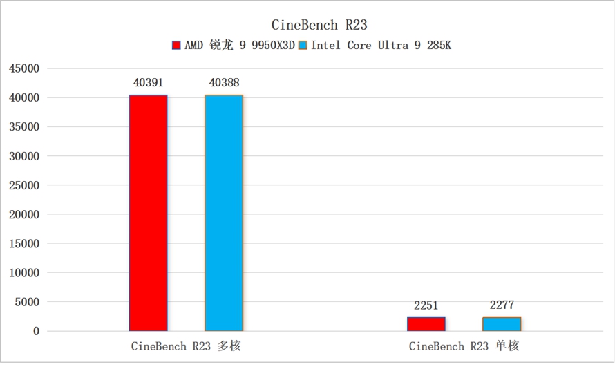咱们先来看一下CineBench R23,这是一款巨匠十分地熟识的测试软件,借助关于图片的渲染来考验CPU的多核以及单核的渲染才气,此时AMD锐龙 9 9950X3D科罚器的敌手也酿成了最新的Intel Core Ultra 9 285K科罚器,不错看到两颗科罚器处于手足之间。