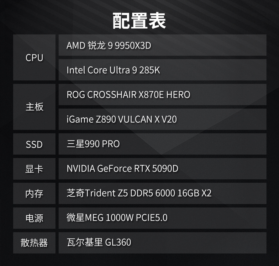 在AMD追究发布锐龙 9 9950X3D科罚器之前,系数显卡行业也过程了一番进化,NVIDIA发布了GeForce RTX 50系显卡,而AMD则发布了Radeon RX 9000系显卡,为了让AMD锐龙 9 9950X3D科罚器能够充分施展作用,咱们也对整机测试平台进行了全面的升级。包括取舍NVIDIA GeForce RTX 5090D显卡,芝奇的DDR5-6000内存,以及三星的990PRO SSD,虽然也包括ROG为发热级AMD科罚器所打造的ROG CROSSHAIR X870E HERO主板。