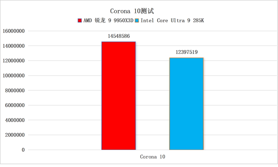 Corona Benchmark 是一个基于 Corona 10 为渲染中枢的免费操纵行动,可通过使用Corona 10渲染场景来评估系统性能,通过测试,AMD锐龙 9 9950X3D科罚器的推崇亦然十分出色,领有一定进程的当先。