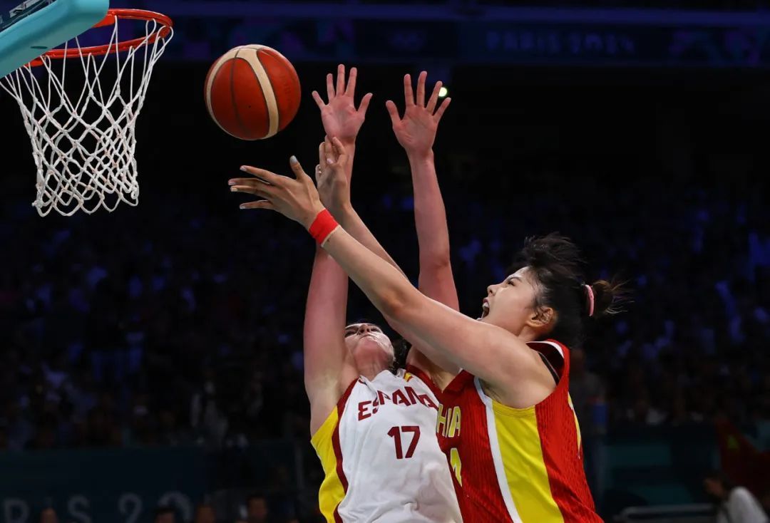 ▲当地时刻2024年7月28日,巴黎奥运会女篮小组赛A组,中国队89-90西班牙队。中国队球员李月汝(右)在比赛中上篮 图/IC photo