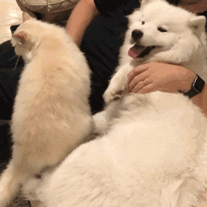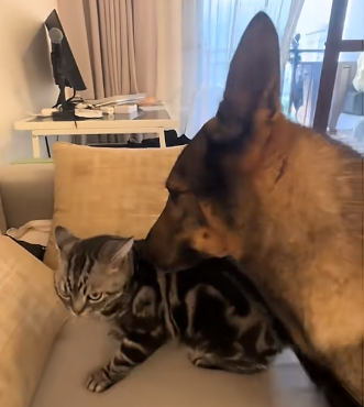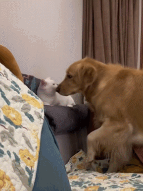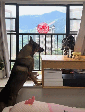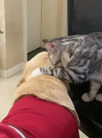 猫来贴贴,狗就啃猫耳朵猫尾巴,猫不来,狗就畴昔扒拉……