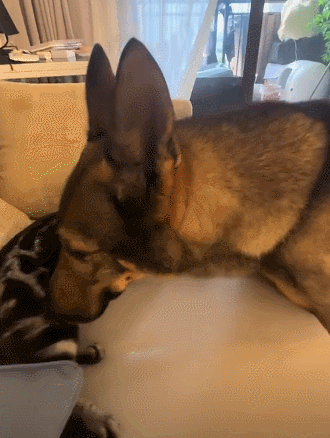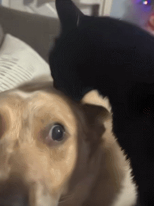 你看这只咪咪本思给狗子舔毛,体现下大佬对小弟的关爱,成果刺挠得狗子直甩头,被大耳朵打得脑瓜子嗡嗡的。